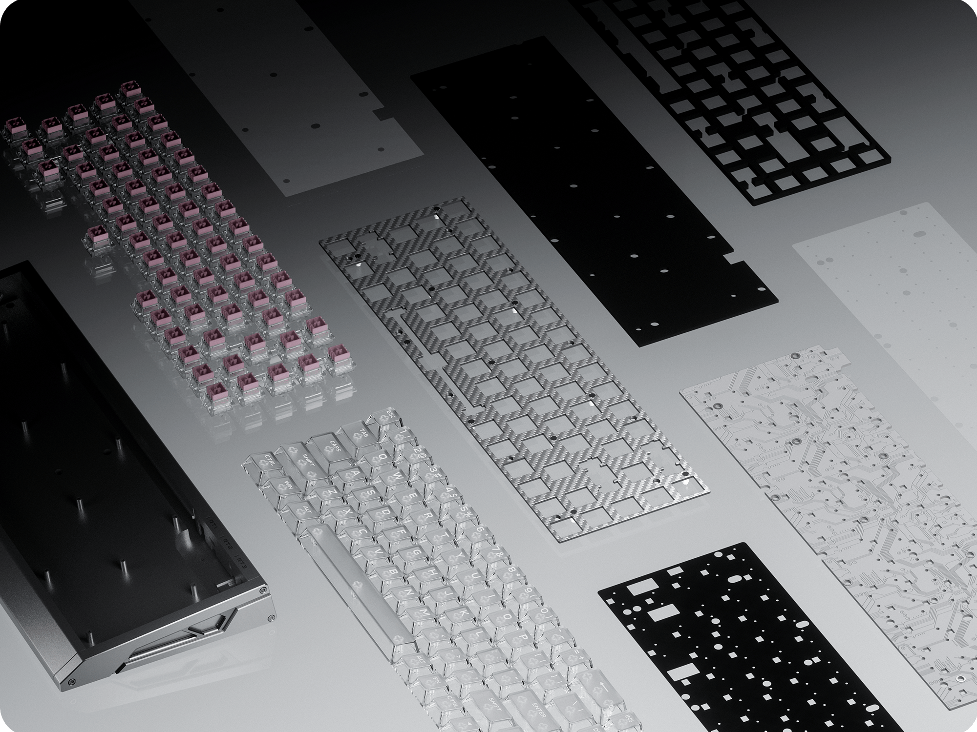 Carbon Fiber Plate (Black / Silver) delivers a firm, refined feel with subtle flexibility. Combined with multi-layer sound dampening, it creates a clean, solid typing sound—no hollowness, just precision in every keystroke.
