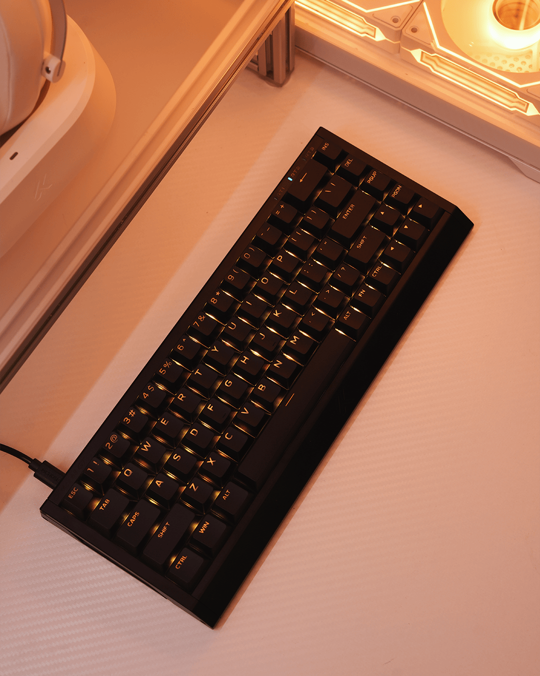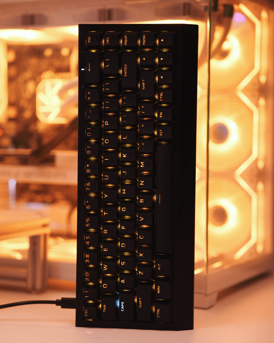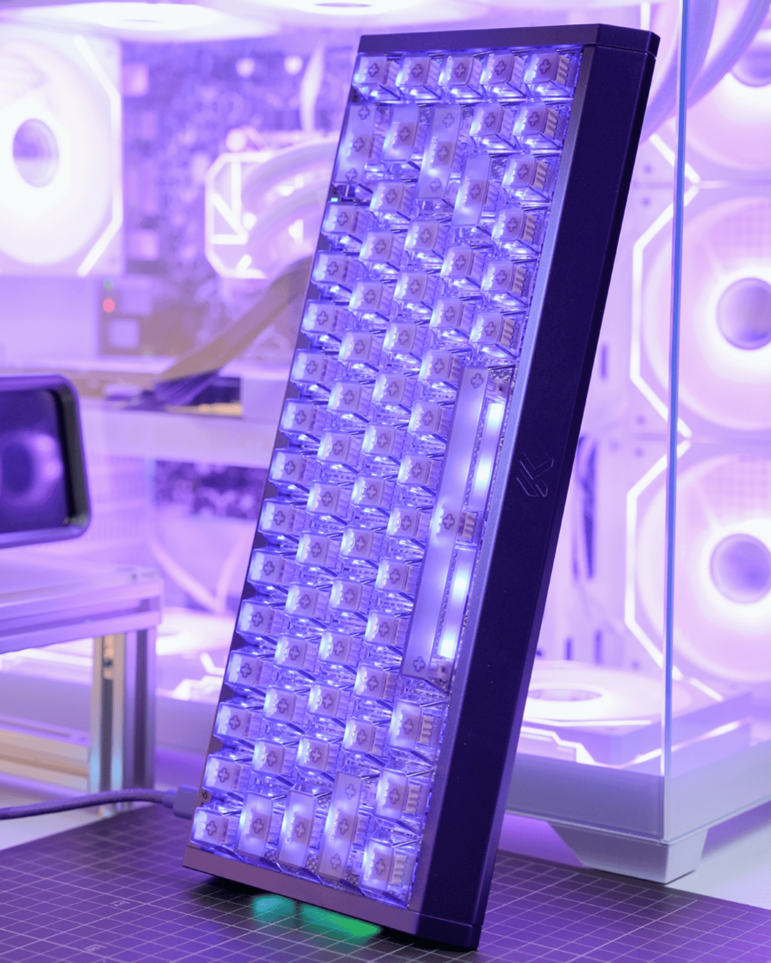 The CNC aluminum body, finished with anodization and a high-polymer coating, pairs clean lines and solid structure with transparent PC keycaps that let light flow through—creating a refined, durable build with depth, subtle illumination, and a precise, elevated typing experience.