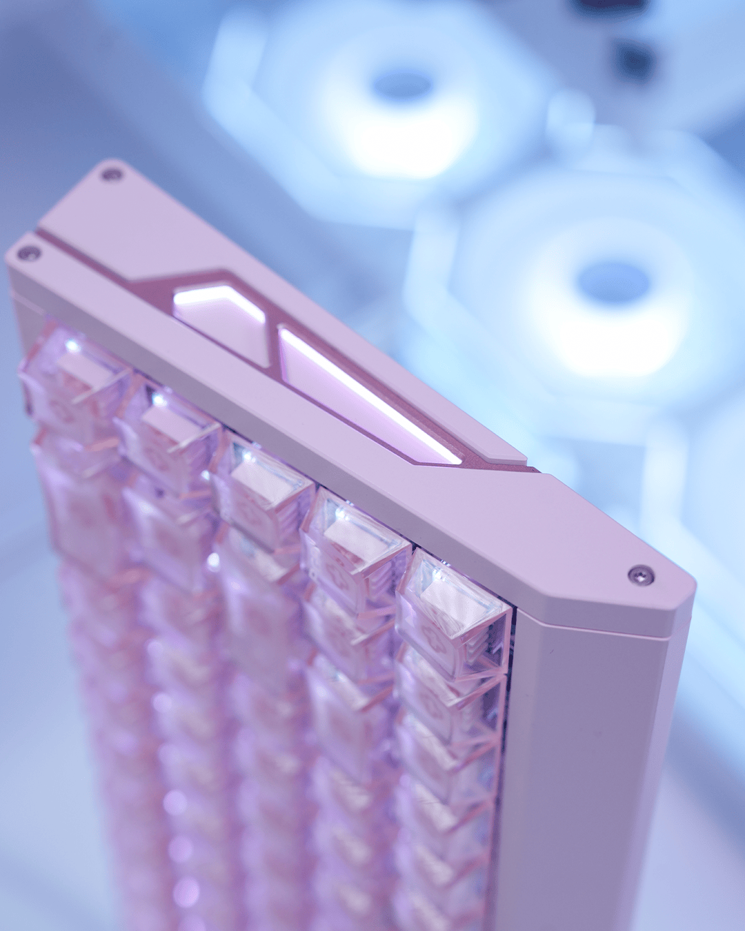 The side design and aluminum alloy anodized back panel form a unified structure, enhanced by ARGB lighting that seamlessly integrates light with form. From side details to the bottom view, every angle delivers a clean, cohesive, and premium aesthetic.