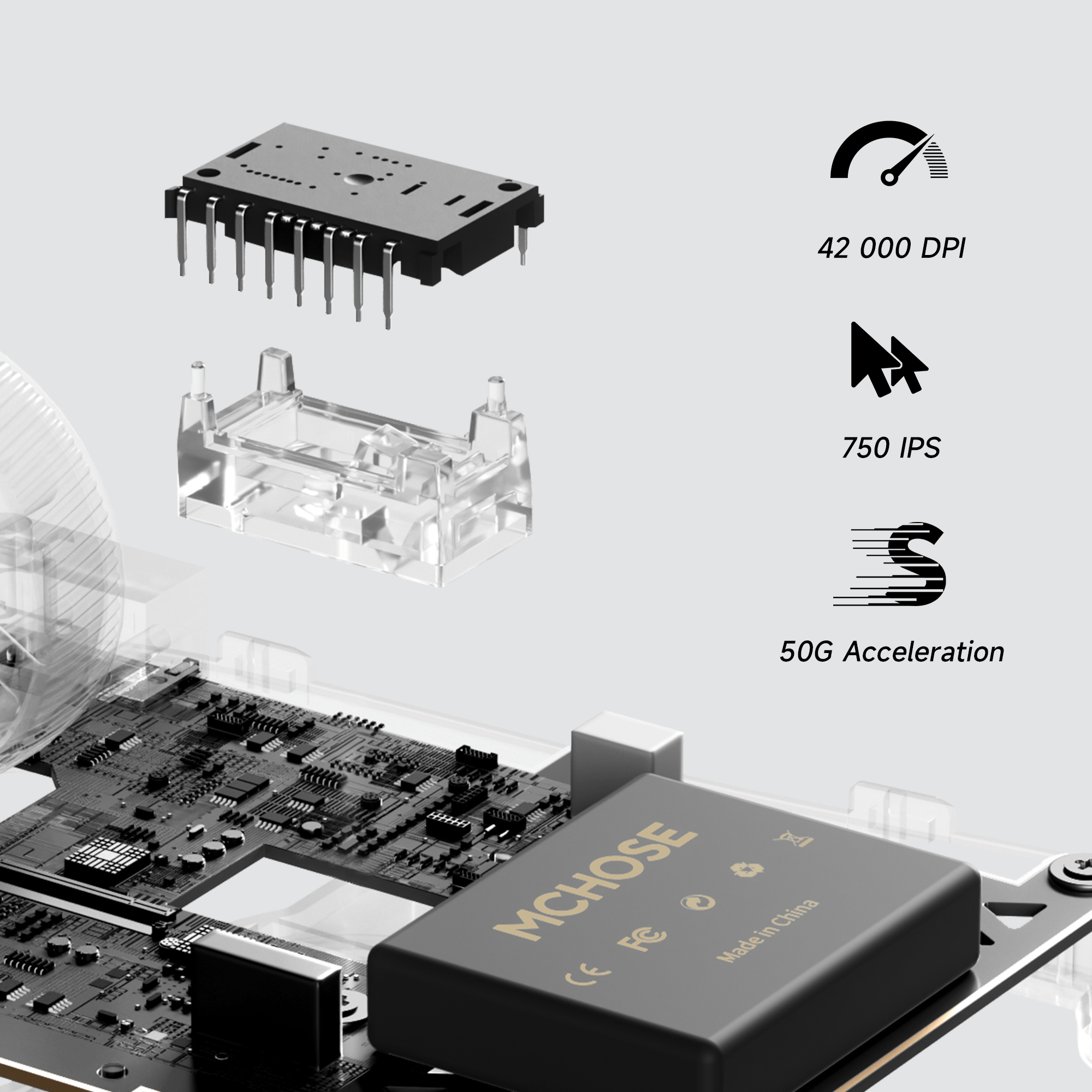 Experience unmatched precision and speed with the PAW3950 TI sensor — engineered for pro gamers, delivering up to 42,000 DPI, 750 IPS tracking, and 50G acceleration for pixel-perfect control.