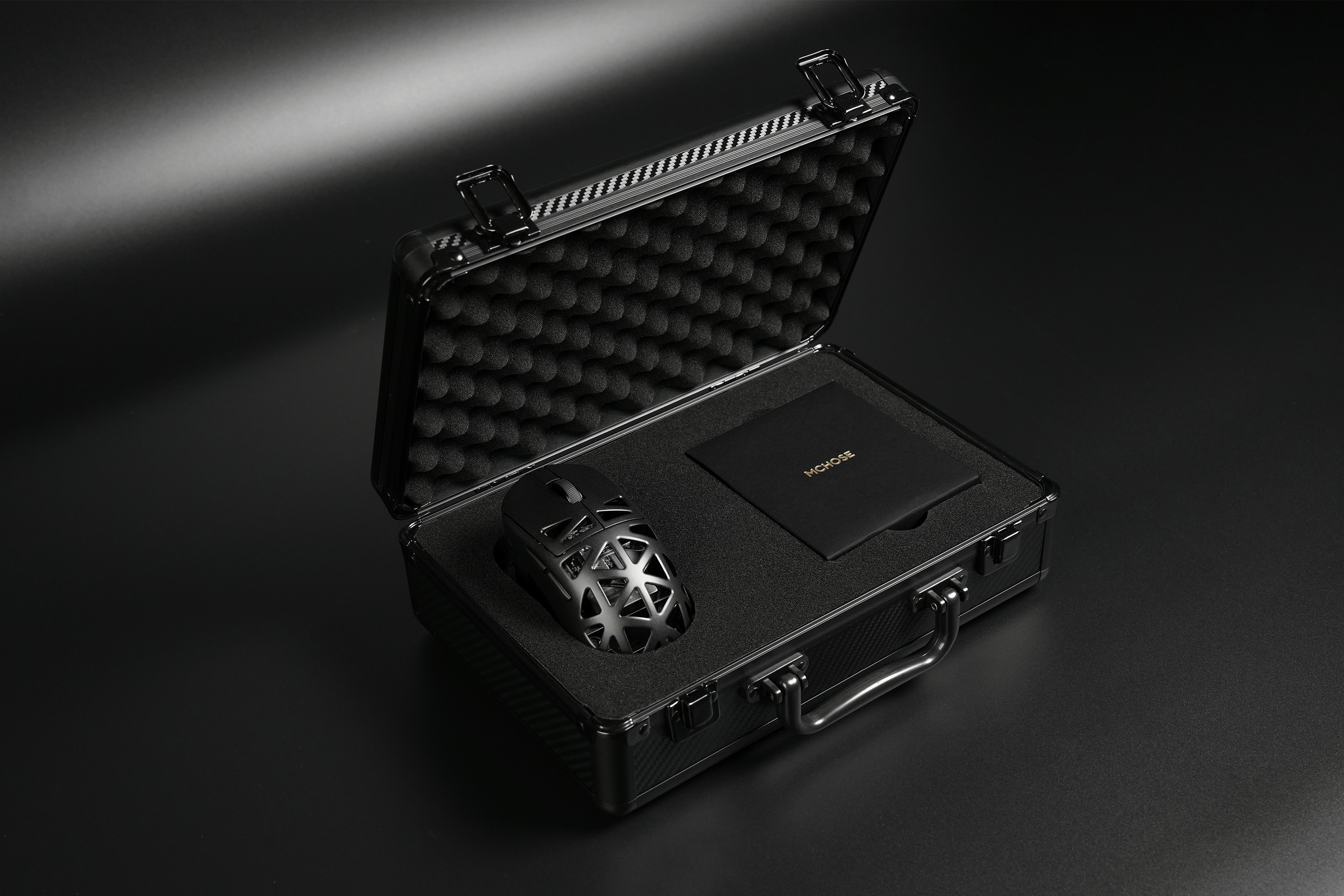 High-grade sturdy case, custom laser-etched bottom plate, glass skates, mouse pouch, and included 8K accelerator—more than a mouse, a collector-grade esports tool.
