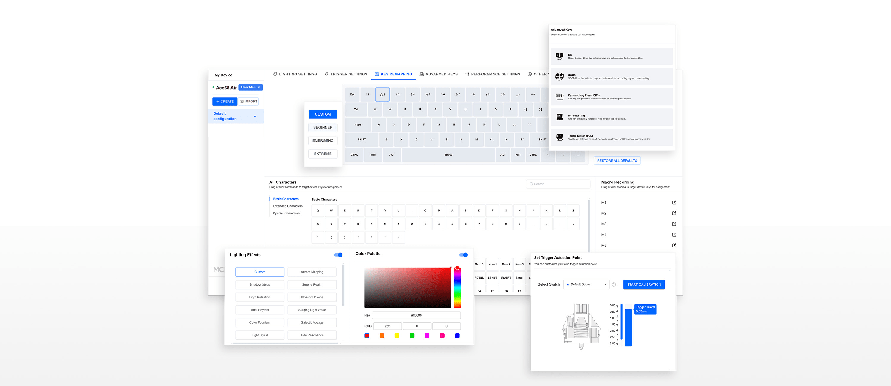 Customize dynamic key travel, key macros, and advanced features like SOCD, RS, DKS, MT, and TGL, ensuring smoother, faster, and more responsive gameplay.
