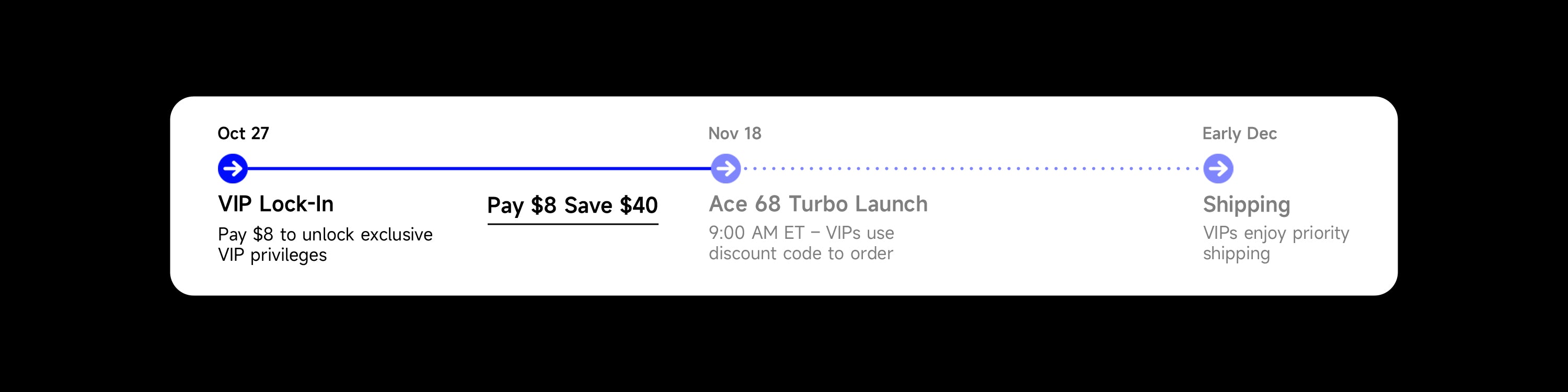 Deposit: Pay US$8 to secure VIP pricing. The coupon ACE68TURBOVIP is valid on launch day for deposit users.