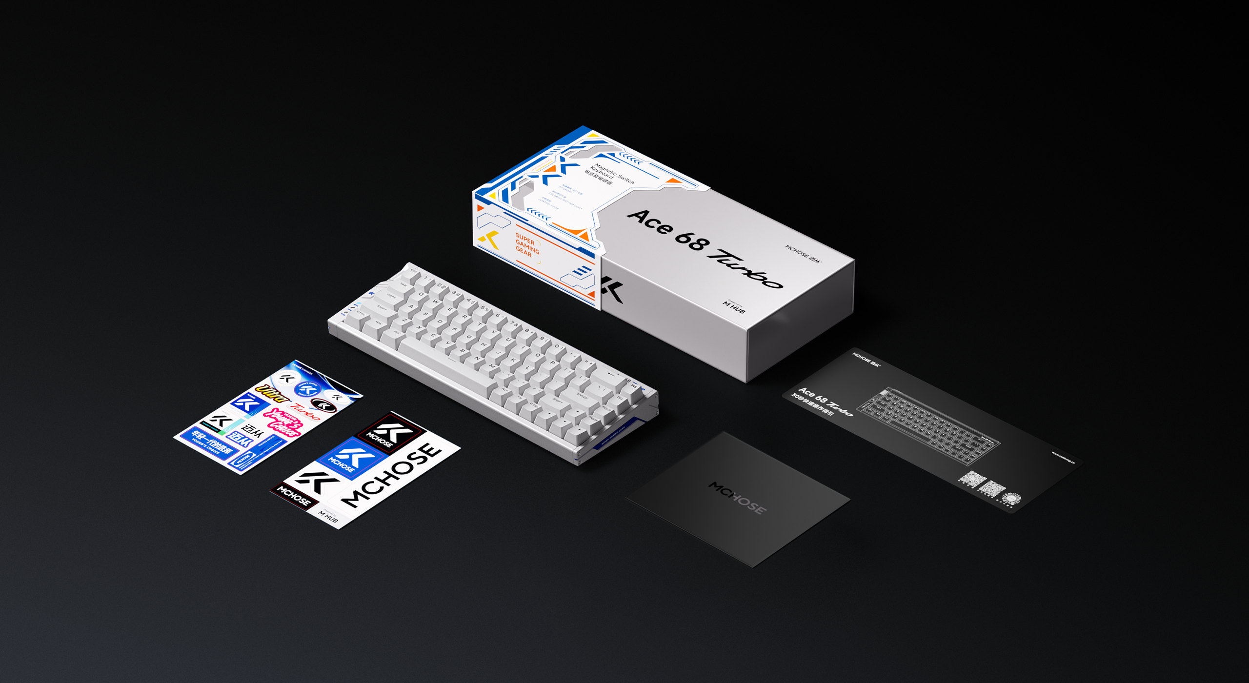 | Package | 1× Ace 68 Turbo HE Keyboard, 1× Function Card, 1× Type-C Cable, 1× Key & Switch Puller, 2× Spare Switches, 1× Dust Cover | |||
