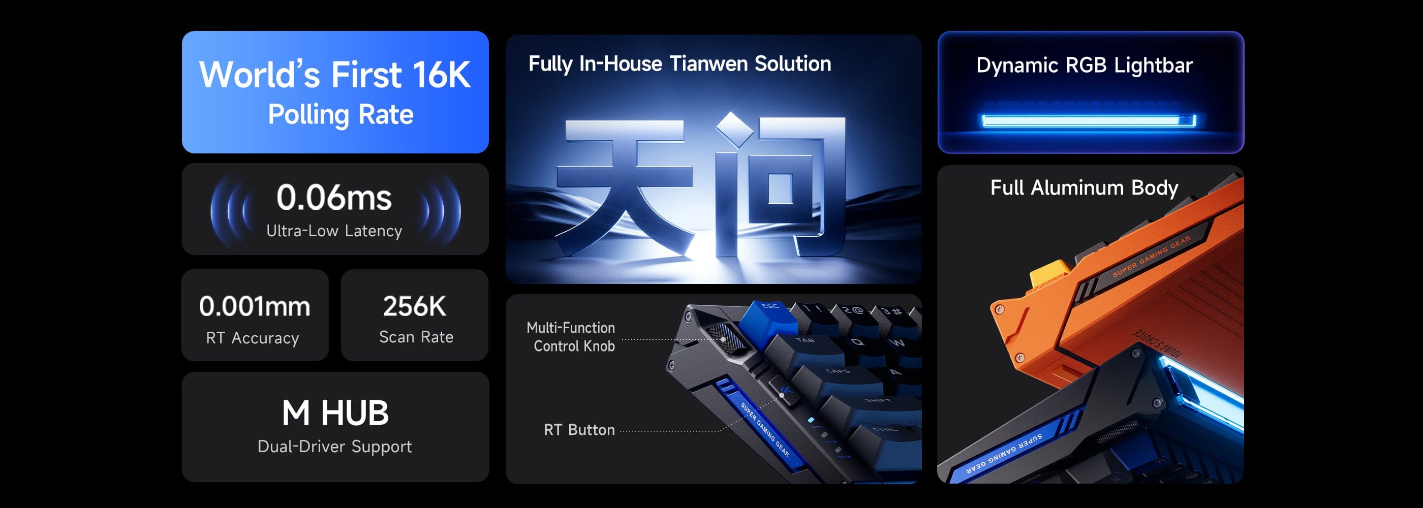 The world’s first 16K ultra polling rate magnetic switch keyboard, designed as a rapid trigger keyboard for ultra-fast, precise input.