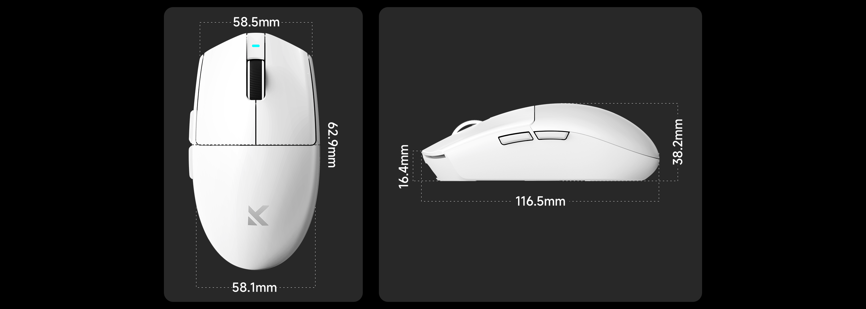 Designed for small to medium hands with a symmetrical shape. A redesigned classic mouse profile compatible with claw, palm, and fingertip grips, striking the perfect balance between comfort and flexible control for effortless operation during long gaming sessions.