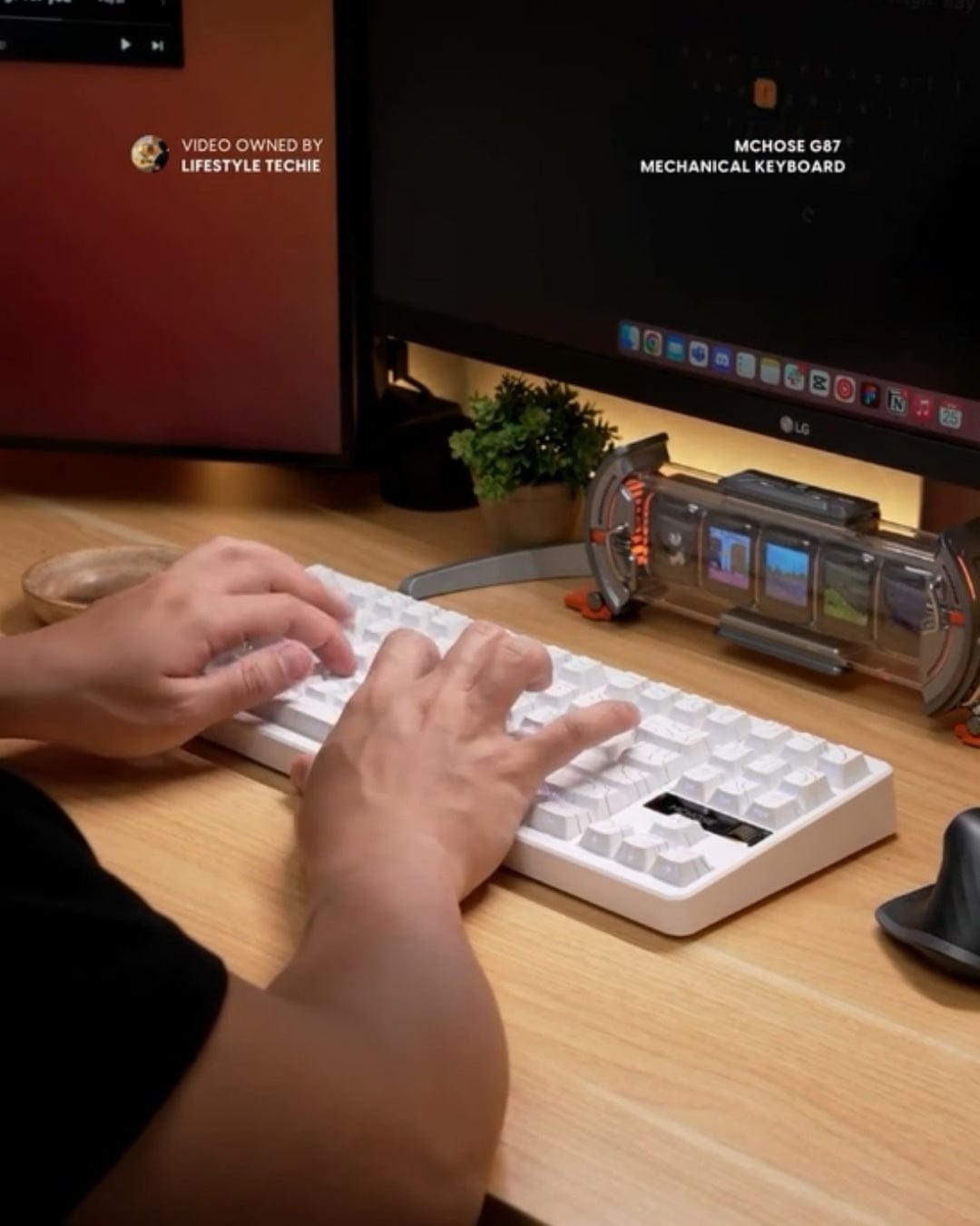 The G87 Mechanical Keyboard features an 80% layout, customizable RGB lighting, and a 3-way volume knob. Its ergonomic design and mechanical switches provide an enhanced and comfortable typing experience.