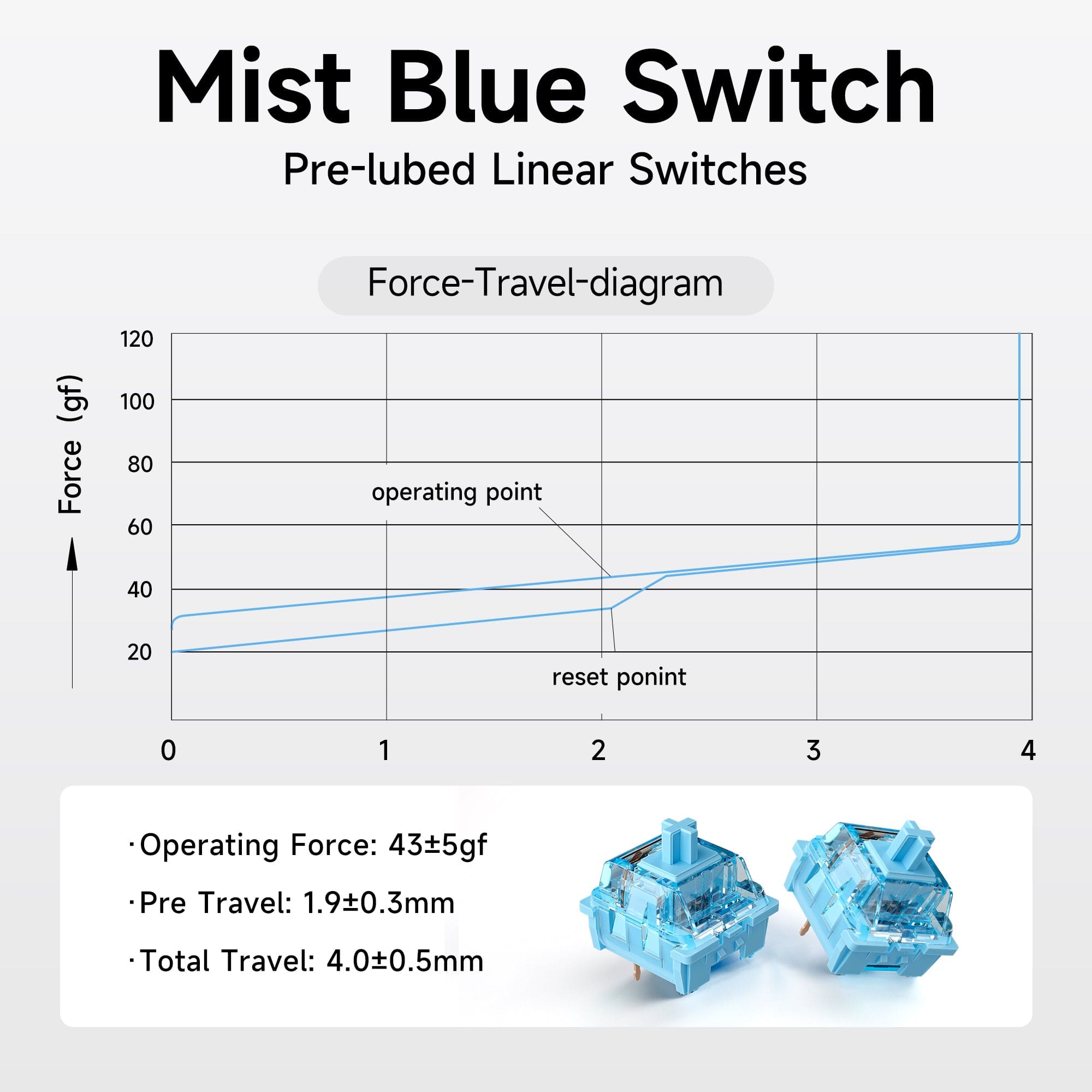 This linear switch comes pre-lubricated by the manufacturer, ensuring a smooth, consistent keystroke. With moderate actuation pressure, it delivers a fluid typing experience perfect for long sessions and high-performance gaming.