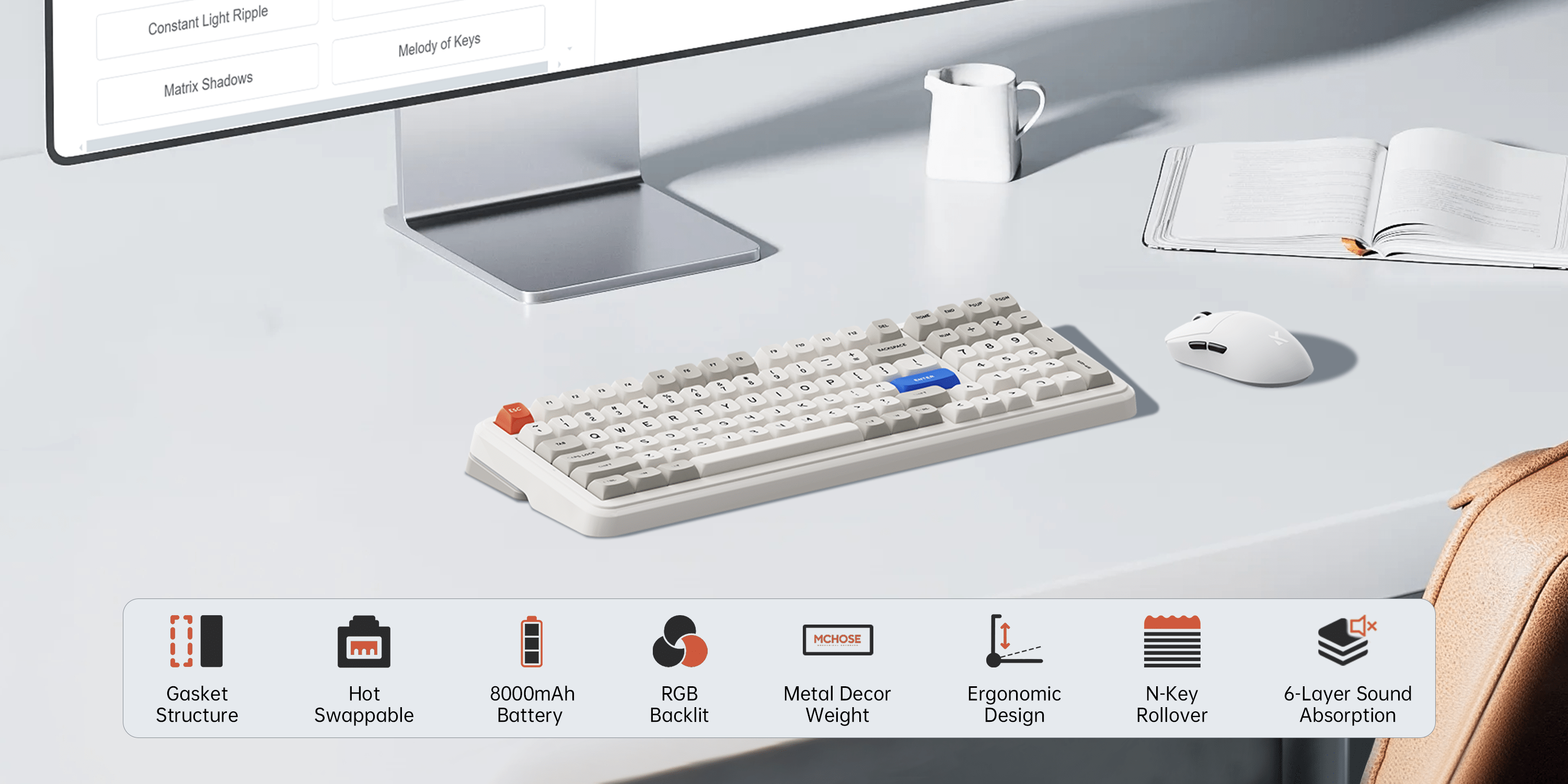 Featuring a compact 98% layout with 99 keys, the MCHOSE K99 V2 combines a refined gasket-mounted structure with six layers of sound-dampening padding for crisp keystrokes. With tri-mode connectivity and dynamic RGB lighting, it delivers a seamless typing experience that inspires creativity. Built for gamers, typists, and creators who demand speed, comfort, and customization.
