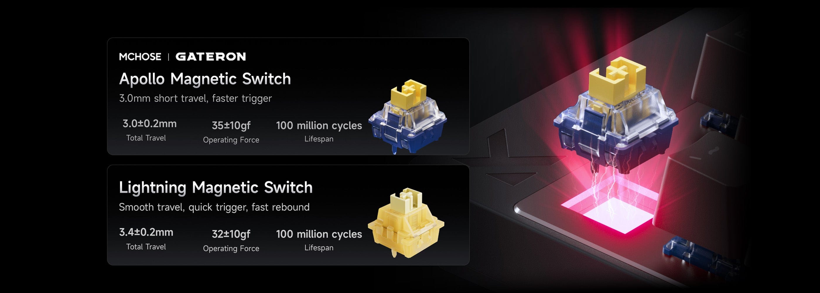 Build your perfect switch setup with apollo or lightning magnetic switches — smooth, fast, and stable. Mix and match to optimize your gameplay.