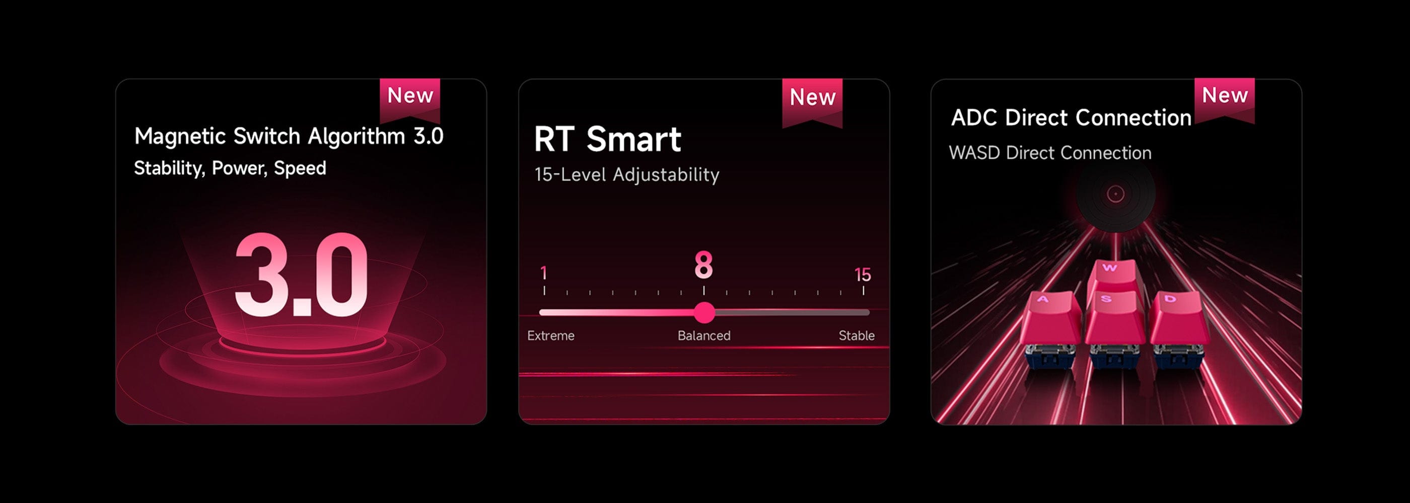 Next-gen dynamic calibration keeps your key actuation precise and stable, automatically recalibrating on every press. No manual tweaking needed.