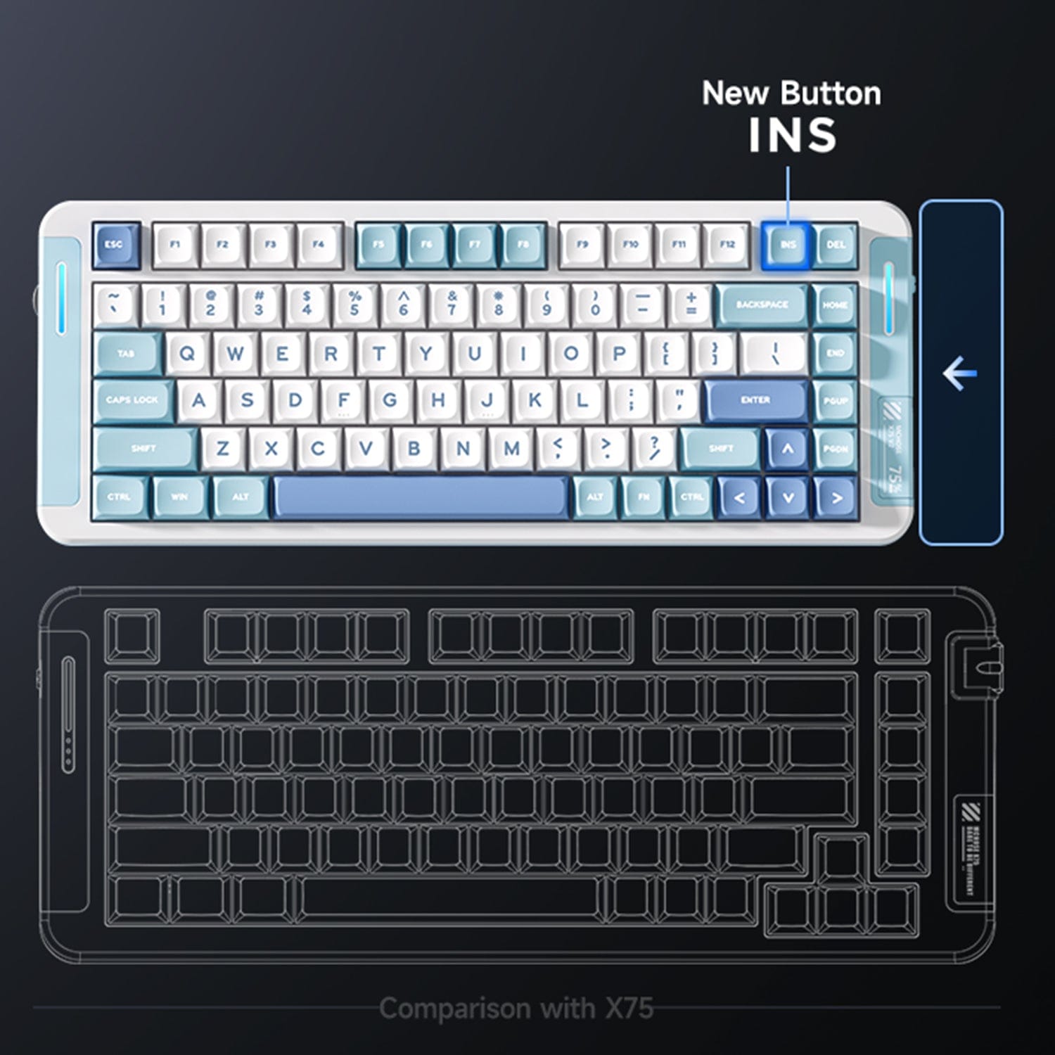 The X75 V2 builds on the strengths of the V1 with comprehensive upgrades, offering a superior experience, more space-efficient design, dazzling lighting effects, and extended battery life. It sets a new benchmark for 75% layouts, delivering enhanced performance and style.