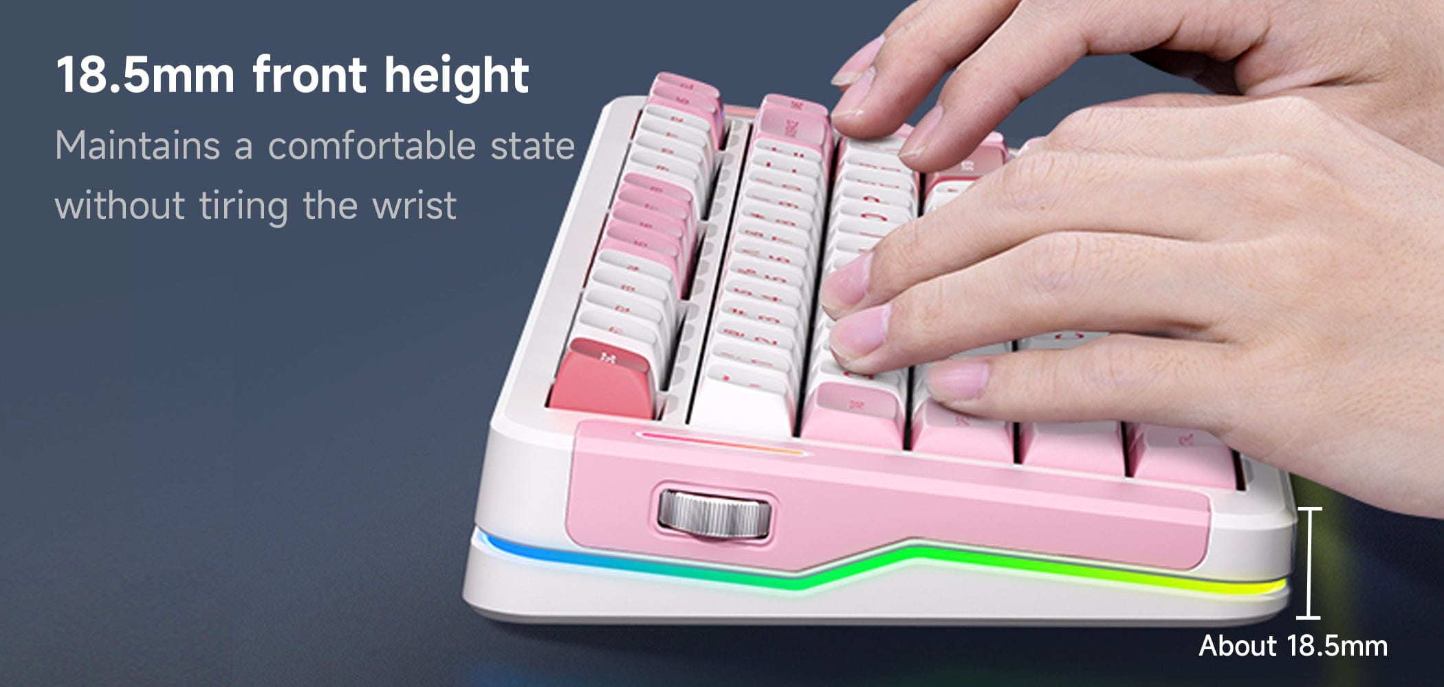 Featuring a front height of approximately 18.5mm, creating the ideal typing angle for all-day comfort.