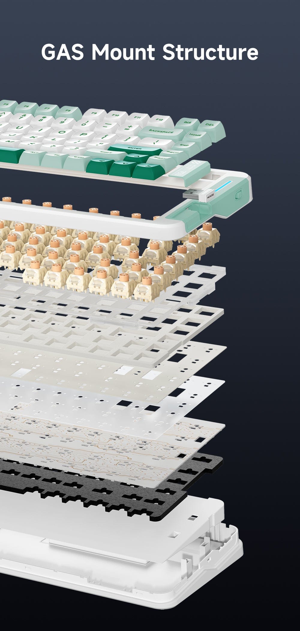 Effectively reduces vibrations with a balanced soft-hard feel. The enhanced structure minimizes resonance, reduces cavity noise and hand vibrations, offering a soft, yet firm and focused typing experience with pure and clean keystroke sounds.